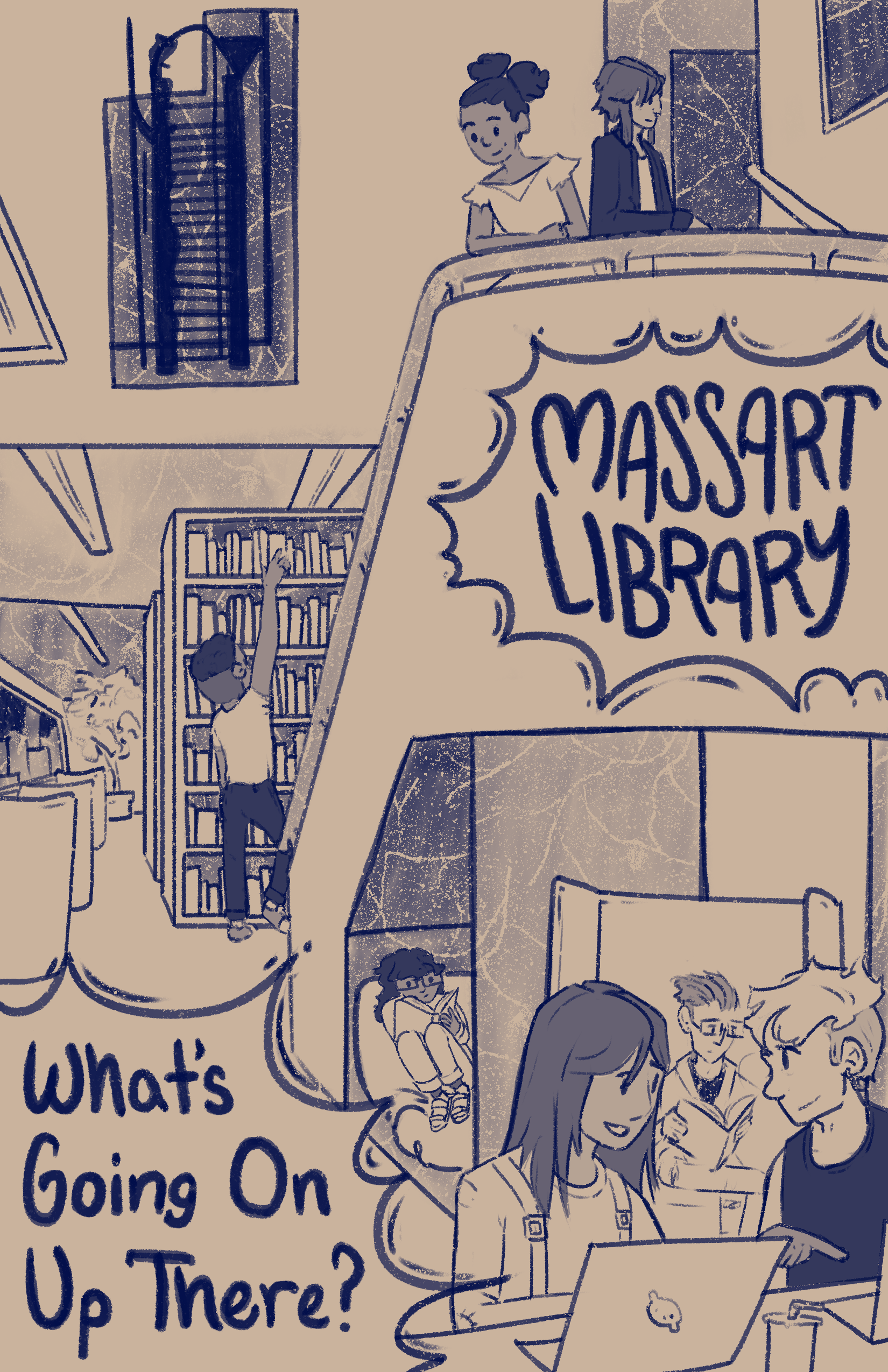 An informational comic commissioned by the MassArt library. It gives an overview of the various services and spaces which can be utilized by students at the library.